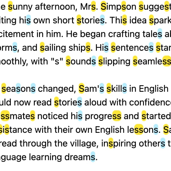 Our tool lets you practice the different S sounds by highlighting them in different colors: